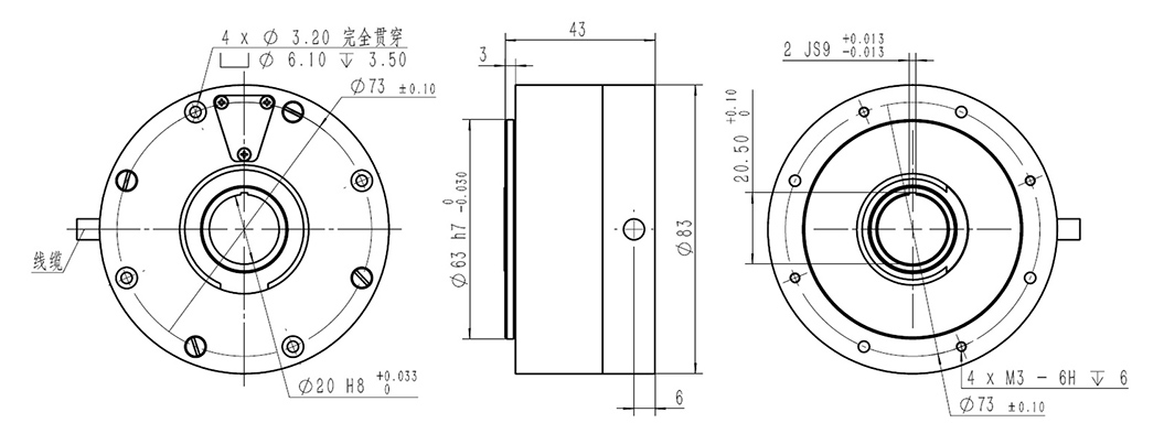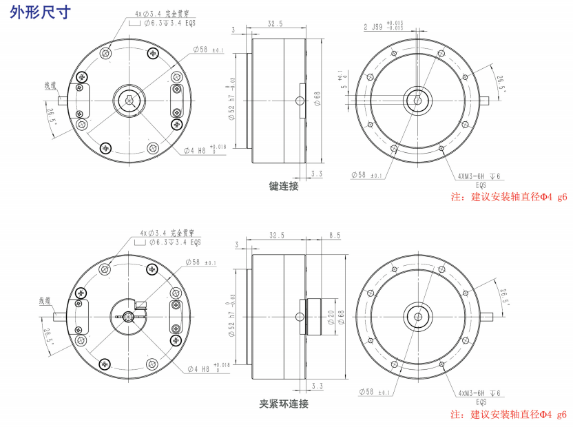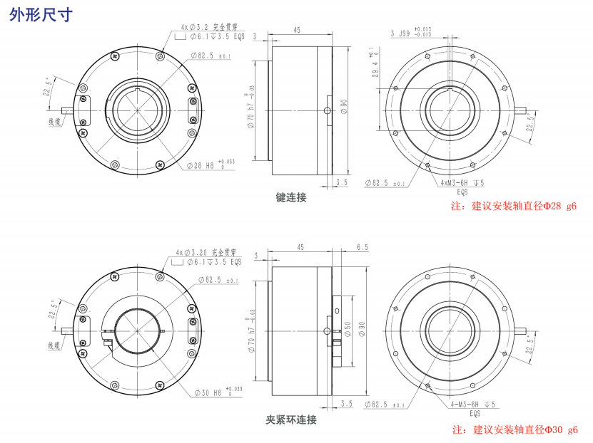 ●轉(zhuǎn)軸形式:同心軸通孔,夾緊環(huán)/鍵兩種連接形式(二選一)。